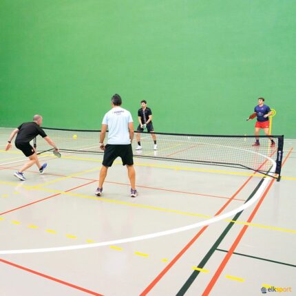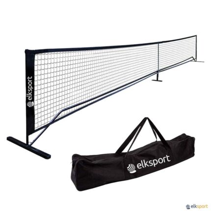 Rede com estrutura em aço com um tratamento anti-oxidação com tinta epóxi a quente na cor preta. A rede d incorpora 6 rodas, 3 das quais com travão, que permitem movê-la de forma rápida e cómoda. Se monta e desmonta em poucos minutos e se armazena num saco próprio feito de tecido Oxford 600D. Dimensões de acordo com os regulamentos da Federação Pickleball International. Para manter a altura da rede, esta estrutura tem uma haste de suporte em fibra de vidro para colocar no centro da rede. Comprimento: 671 cm. Altura nos postes: 92 cm. Altura no centro da rede: 86 cm.