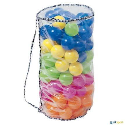 Saco com 84 bolas em 6 cores, ideal para enchimento de piscinas de bolas. As bolas são muito resistentes e adequadas para brincadeiras intensas, recuperando a sua forma original após serem pisadas ou deformadas. Inclui saco para armazenar e transportar as bolas. · Diâmetro: 8 cm