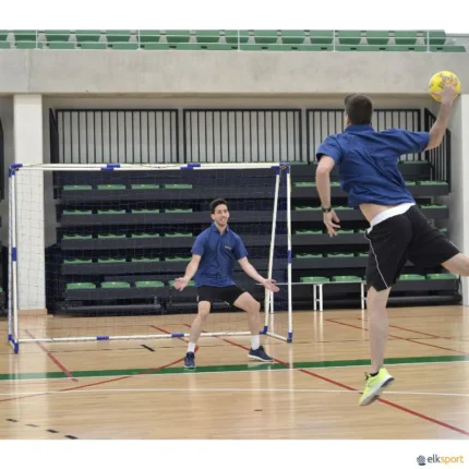 Baliza de andebol fabricada em perfil de alumínio, de secção quadrada de 8 x 8 cm. Em conformidade com a norma UNE-EN 749.