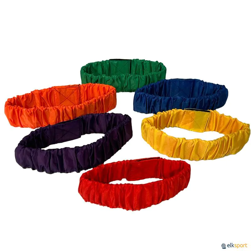 Bandas fabricadas num tecido muito agradável. Estas bandas elásticas são fantásticas para corridas a 3 pés e outras atividades divertidas. Prendem-se com velcro, o que permite colocar e tirar rapidamente.