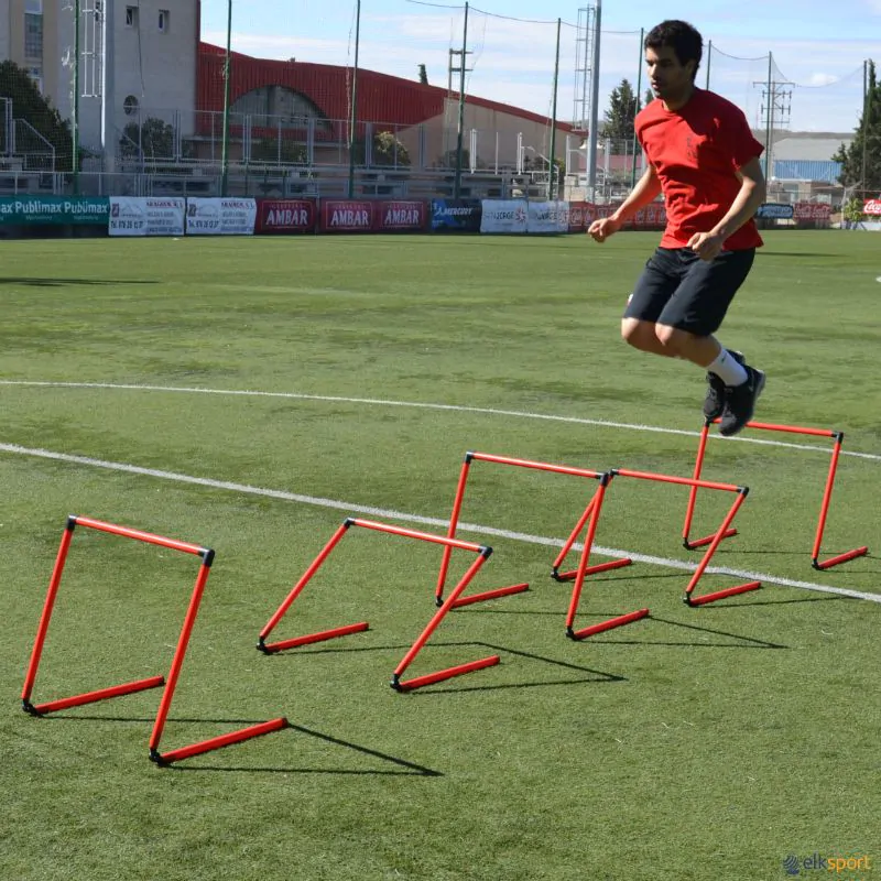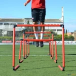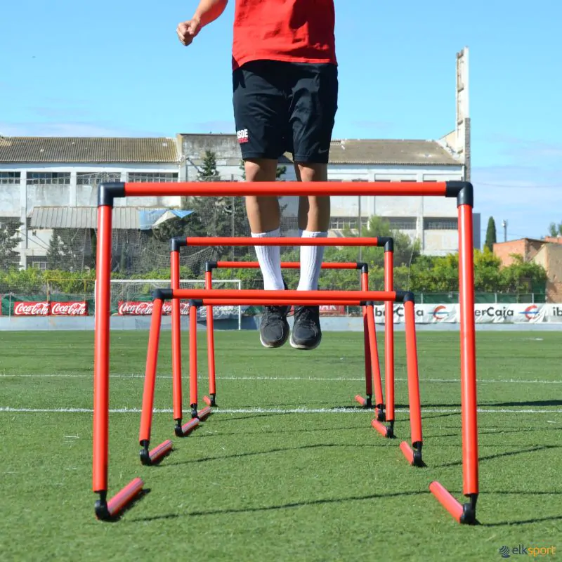 Barreira em PVC, equipada de uma «rótula» na sua base. Com um simples movimento de inclinação, é possível regular a altura do obstáculo desde 10 cm até 60 cm.