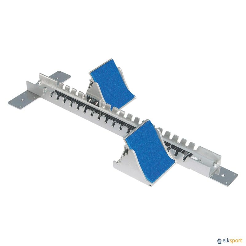 Bloco de partida de alta competição certificados pela World Athletics. Fabricados em alumínio fundido de 82 mm. Plataformas maiores e apoios em borracha para uma saída mais eficiente. Permitem a ligação a um sistema de falsa partida.