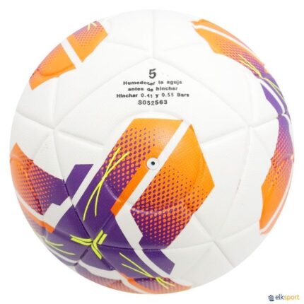 Bola de futebol em pele sintética cosida à mão. Fabricada com uma cobertura exterior texturizada semi-PU de alta densidade de 1,5 mm com 4 camadas de Poly algodão no seu interior. Câmara de látex, com válvula de butilo Hi-Tech de dupla retenção. A forma e o corte preciso dos seus 32 painéis oferecem uma perfeita esfericidade. Excelente resistência à água. Recomendado para campos de relva artificial.