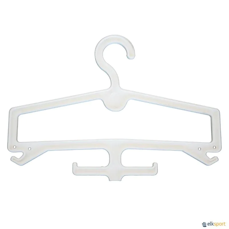 Em material plástico, inquebrável, com  gancho para o calçado. Economiza espaço devido ao seu pequeno tamanho e a possibilidade de acrescentar uma bolsa.