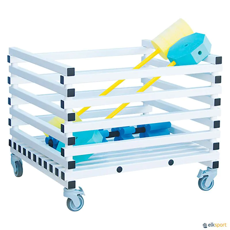Carro com rodas zincadas, resistentes à humidade. Espaço entre barras de 10 cm.