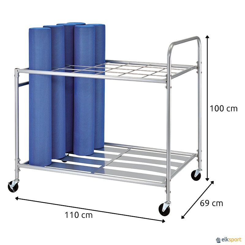 Para armazenar até 24 rolos de 90 cm. Com rodas. Fabricado em aço com pintura epoxi.