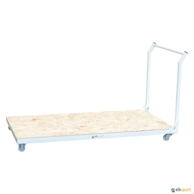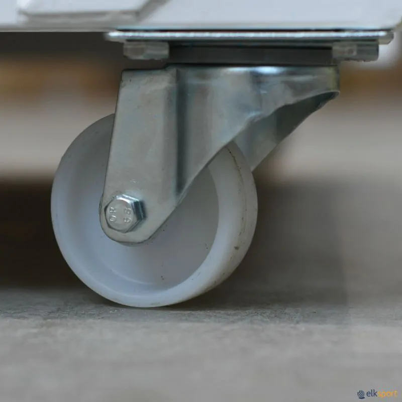 Carro robusto com base em madeira, montada sobre uma forte estrutura de aço, com pintura anti corrosão. Rodas giratórias com 100 mm de Ø.
