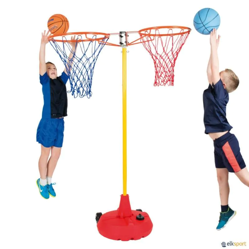 Cesto Duplo é outra possibilidade que se adapta ao sistema da Grande Base. Permite trabalhar habilidades de lançamento de forma progressiva, graças ao poste telescópico de 1,15 m a 2,44 m.