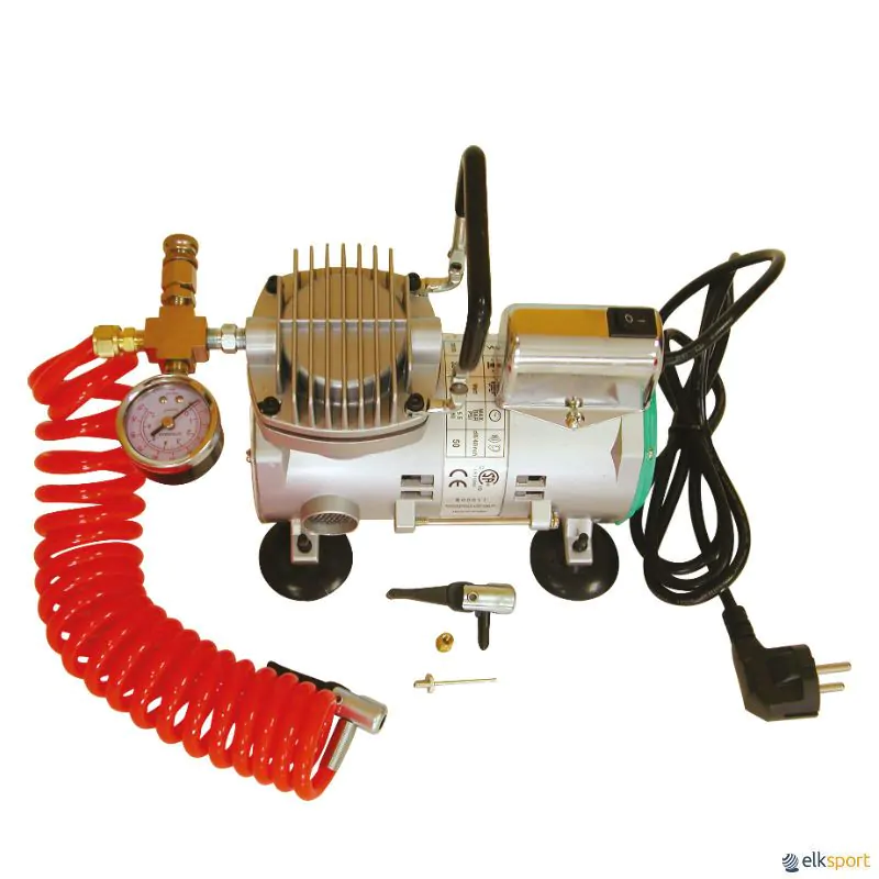 Compressor elétrico 220V especial para bolas, compacto e leve, com manómetro de pressão integrado.