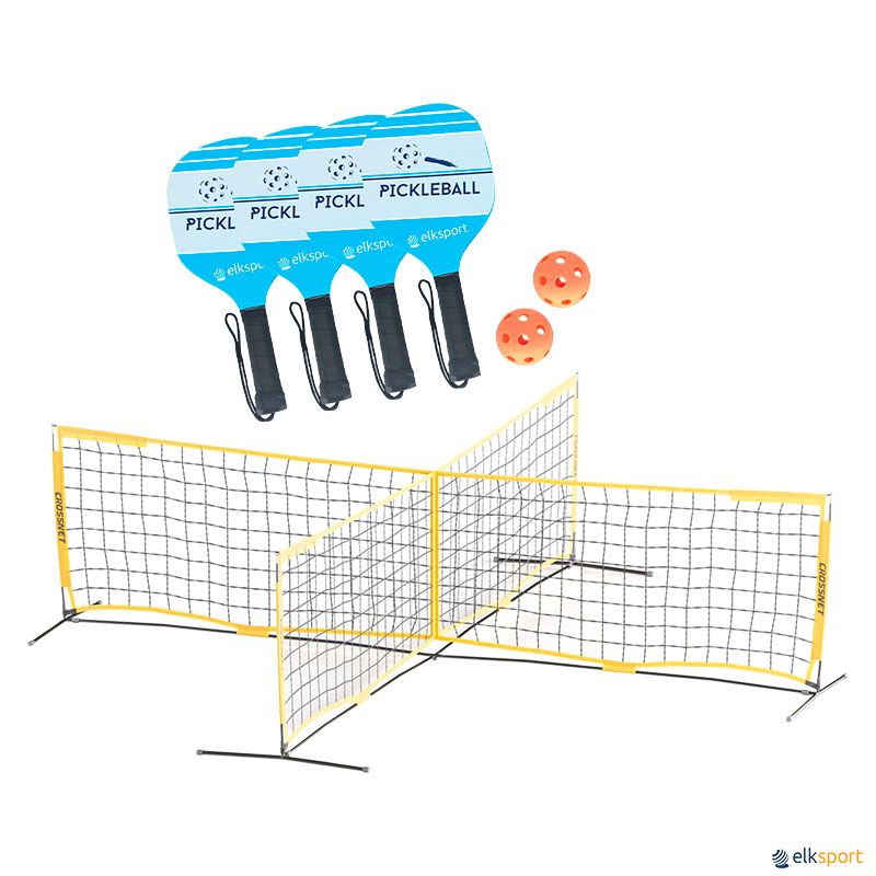 O Crossnet Pickleball é uma variação divertida e dinâmica do pickleball tradicional. O campo é dividido em quatro partes iguais e o jogo é sempre jogado ao voleio, ou seja, a bola não pode tocar no chão. Quando a bola cai no chão, o último jogador que a tocou marca um ponto. O primeiro jogador a alcançar 12 pontos vence. Pode ser jogado tanto em espaços interiores como exteriores.