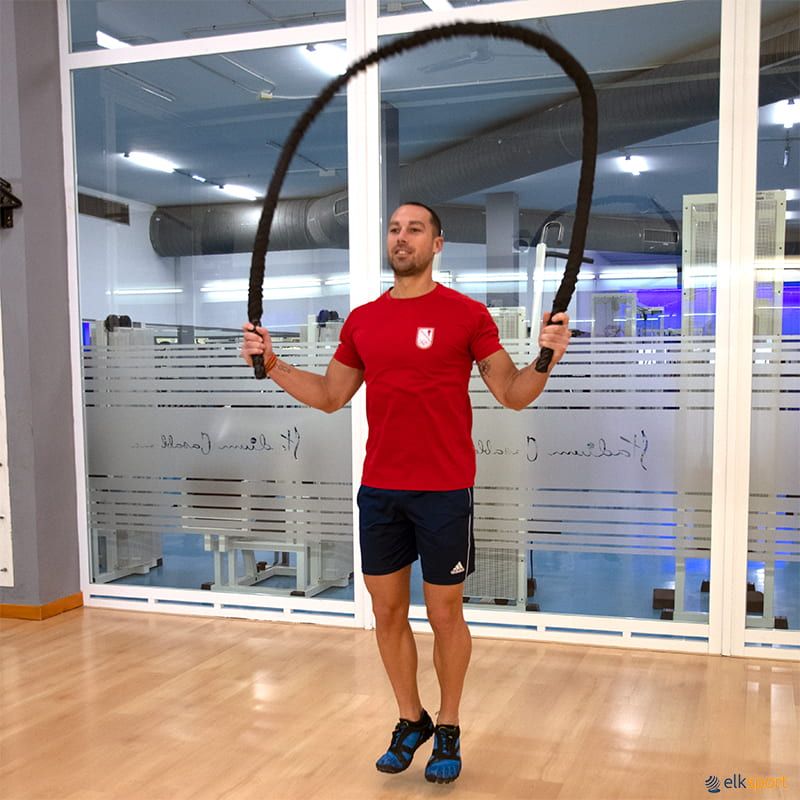 A corda funcional para saltar permite combinar o treino de força e o treino cardiovascular. Com esta corda, é possível realizar ambos os tipos de treino num só, uma vez que o seu comprimento e peso permitem saltar com ela. Fabricada com o mesmo material das cordas funcionais, possui uma fita protetora nas extremidades para evitar que se desfie e é revestida com uma capa protetora de nylon que a protege do desgaste e da abrasão.