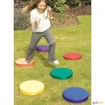 Estes discos sonoros são ideais para desenvolver o equilíbrio, lateralidade e sequenciação de habilidades etc… Conjunto de 6 discos coloridos, somente 1 deles imite som ao ser pisado, esta particularidade permite uma grande riqueza pedagógica na criação de exercícios. Podem se adicionar mais conjuntos para diversificar as atividades. Cobertura dos discos em nylon, com base antiderrapante para interior e exterior, lavável.