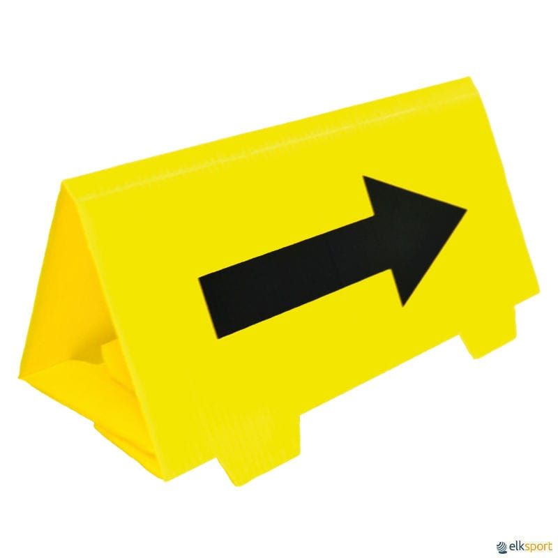 Seta indicadora de posse de bola. Fabricada em cartão plastificado de cor amarela, com seta em preto para maior visibilidade.