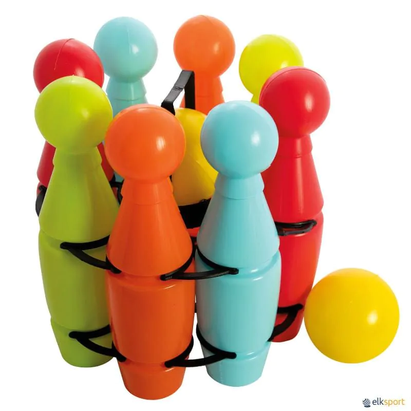 Clássico jogo de bowling, composto por : 8 pinos e 2 bolas. Altura dos pinos: 24 cm.