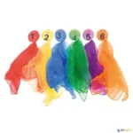 Conjunto formado por 6 lenços de cores: vermelho, verde, azul, amarelo, laranja e violeta.