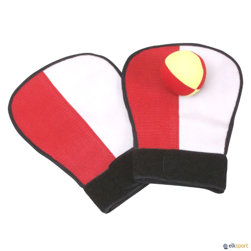 Duas luvas de velcro que apertam no pulso, ideais para  trabalhar lançamento e receção ou como luva de iniciação ao basebol, com bolas de velcro.