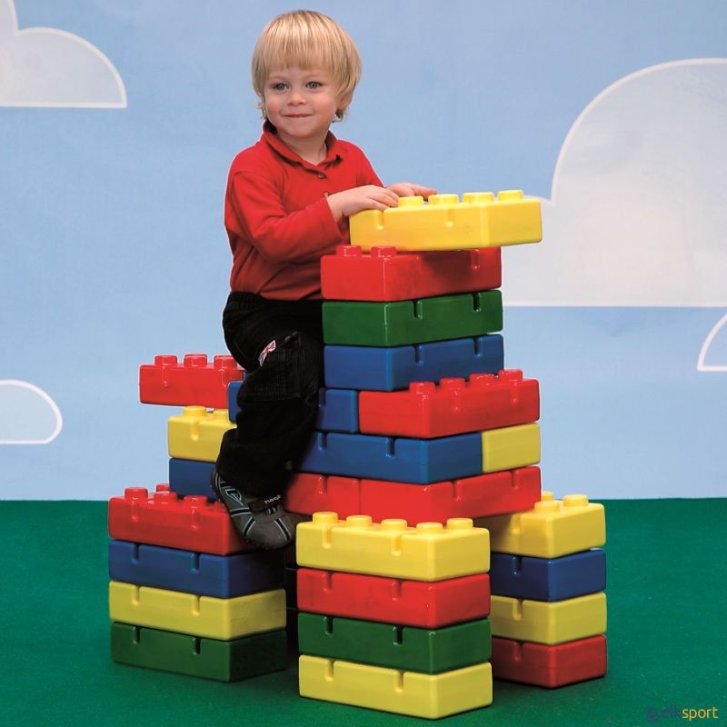 Conjunto de 40 tijolos em 4 cores (amarelo, azul, vermelho e verde) fabricados em plástico resistente e seguro, de acordo com a norma europeia UNI EN 71-1 / 2 / 3. Estes tijolos são muito versáteis, fáceis de montar e podem ser utilizados para construir obstáculos para atividades motoras. As ranhuras dos tijolos foram especialmente concebidas para colocar arcos e bastões de forma rápida e segura, permitindo combinações infinitas. Também podem ser usados como blocos de construção gigantes. São um produto perfeito para estimular a destreza e a criatividade das crianças e, graças ao seu grande tamanho, também são adequados para crianças mais pequenas, que se podem divertir a construir as suas próprias criações.