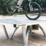 Mesa para exterior resistente as intempéries, ao clima e ao vandalismo. Recomendada para locais públicos, como escolas, hotéis e parques campismo.