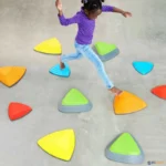 Sem dúvida a atividade que mais entusiasma as crianças quando vão ao rio. Ir de pedra em pedra sem se molhar é um exercício divertido e entusiasmante. O objetivo é saltar de pedra em pedra sem cair. A partir de aqui podem-se desenhar todos os jogos e atividades que se queiram.