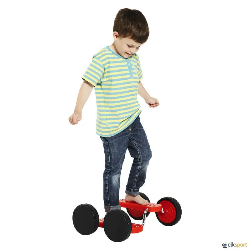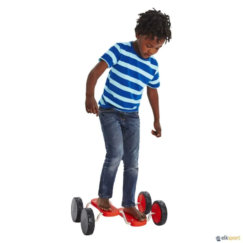 Baldes de plástico, ligados por uma corda que permite regular as distâncias entre estes. O topo de cada balde tem relevo para evitar que escorregue ao caminhar sobre eles. Assim, as crianças ganham confiança e melhoram o seu equilíbrio, à medida que avançam ao pisar os baldes com diferentes distâncias. Fabricados em polipropileno resistente, os baldes podem suportar o peso de um adulto. Pode-se juntar outros conjuntos, para formar percursos mais longos.