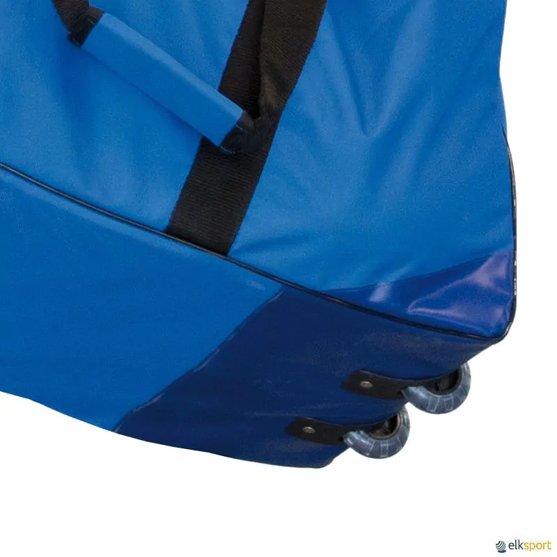 Fabricado em nylon reforçado. Tem rodas em uma extremidade e uma alça na outra para facilitar o seu transporte, além de uma alça de ombro ajustável na lateral.
