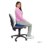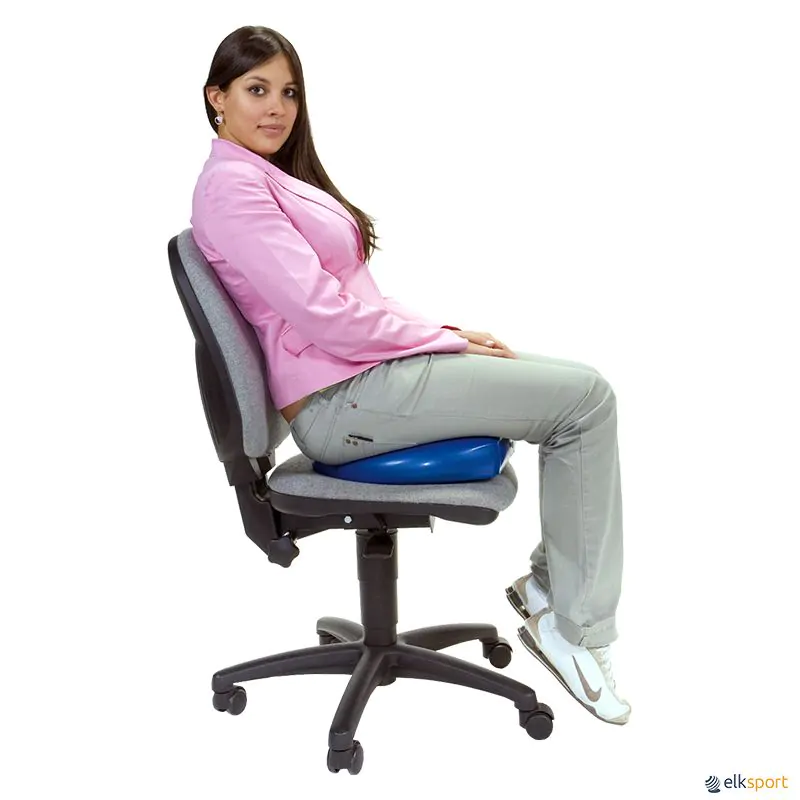 Ideal para pessoas que estão longos períodos sentadas. Esta base tem uma única forma com duas funções. Colocando a parte mais alta na parte traseira da cadeira, proporciona uma posição relaxante que alivia a coluna na parte lombar. Colocando a parte mais alta para a frente, cria-se deste modo uma posição dinâmica e ativa para realizar exercícios em posição sentada.