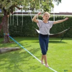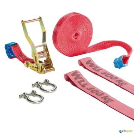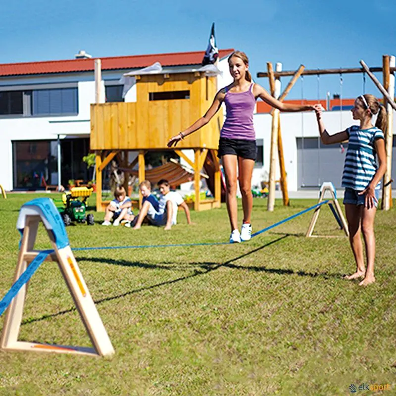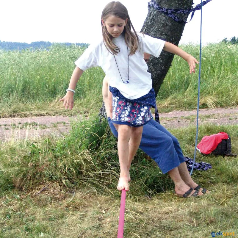 Para utilizar este conjunto necessita de 2 árvores ou 2 postes de voleibol, separados de 4 a 15 metros, e de uma superfície de receção suave, tal com relva ou tapetes acolchoados. Criada na Califórnia, esta atividade é inspirada pelo funambulismo e encontrasse entre as atividades circenses e de escalada. Excelente para o enriquecimento do equilíbrio. A cinta tem entre 3,5 e 5 cm de largura, é ligeiramente elástica e coloca-se em 2 pontos fixos a uma altura, que pode variar entre 0,40 e 1 metro. De fácil montagem, em 5 minutos já se pode realizar exercícios de equilíbrio: caminhar para trás, para frente, saltar, fazer meias voltas.
