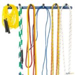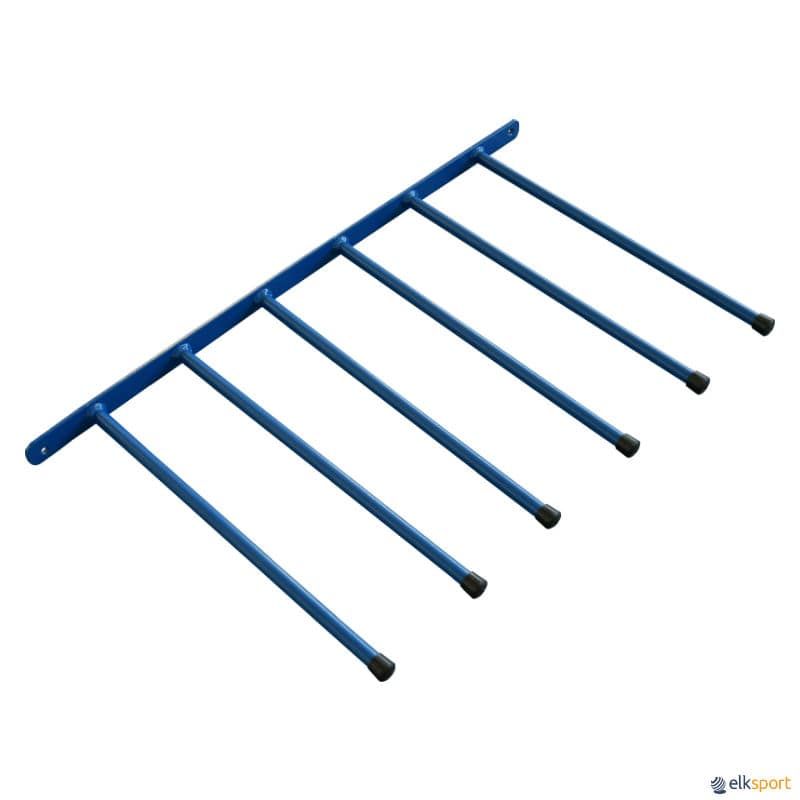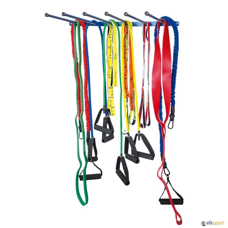 Suporte metálico para aparafusar à parede, permite armazenar até 300 elásticos ou cordas