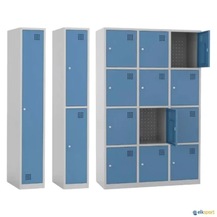Fabricados em chapa de aço laminado em frio, estrutura soldada e pintada com epóxi em pó. Ampla gama de cores disponíveis. Equipados com prateleira superior e suporte de cabides, porta etiqueta embutido, ventilação e fecho com chave. São fornecidos sem pés (opcionais).