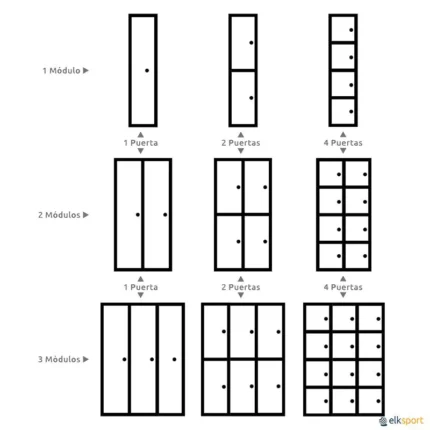 Módulos de 1 coluna, 2 colunas ou 3 colunas com 1 porta, 2 portas ou 4 portas.