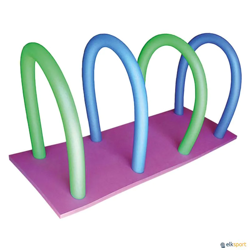 Tapete flutuante retangular fabricado em espuma de células fechadas, com 4 pares de furos, para introdução das extremidades das batatas redondas, incluídas. Cores variadas.