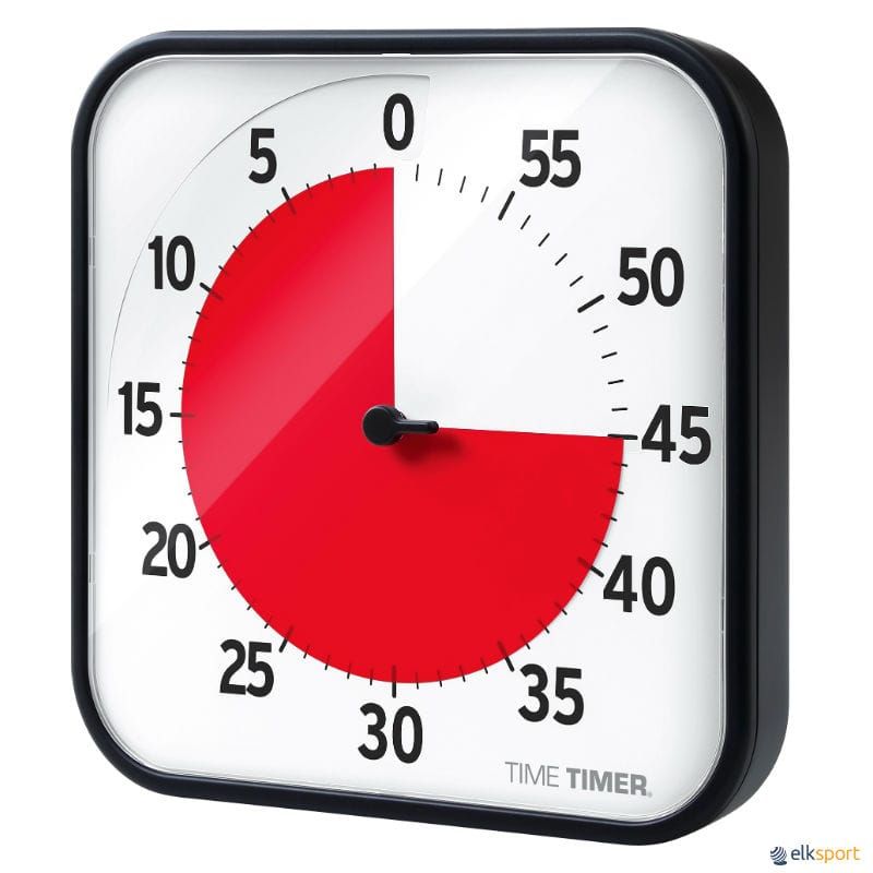 O cronômetro ajuda a responder a essa pergunta universal. Projetado para ajudar os alunos e atletas a perceberem “quanto tempo resta” e o conceito do tempo decorrido de forma didática. Mova o disco vermelho para o tempo desejado, a contagem decrescente começa e o disco vermelho desaparece, mostrando o tempo restante. Além de mostrar quanto tempo resta, a passagem do tempo é visível. As crianças entenderão facilmente o cronômetro, mesmo quando não conseguem entender a hora num relógio tradicional.